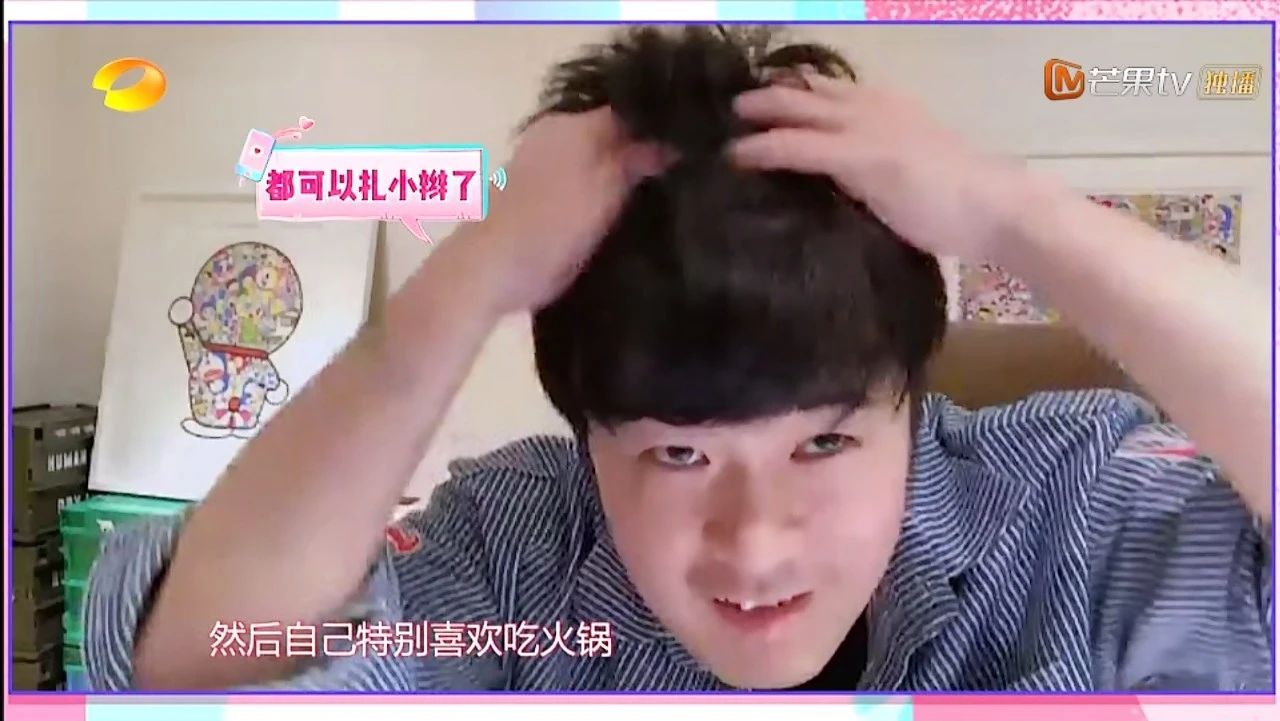 现在都能扎小辫了,而且据陈赫说,他每天上班都要用剃须刀把两鬓的头发都剃掉,要不然头发太多太厚了。