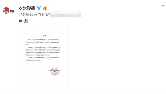 以下是欢娱影视声明: