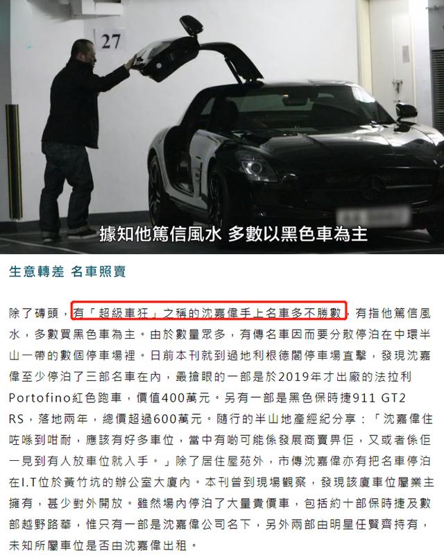 然而,当员工都在放无薪假苦熬时,沈嘉伟仍照买豪车,包括去年以400万港币买入全新法拉利,生活依然富贵。