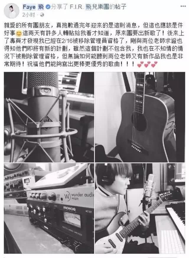 前段时间,飞儿乐队的主唱Faye发文称,完全不知道乐团即将发行新歌,而自己也在完全不知道的情况下,被移除粉丝专页的管理员资格。
