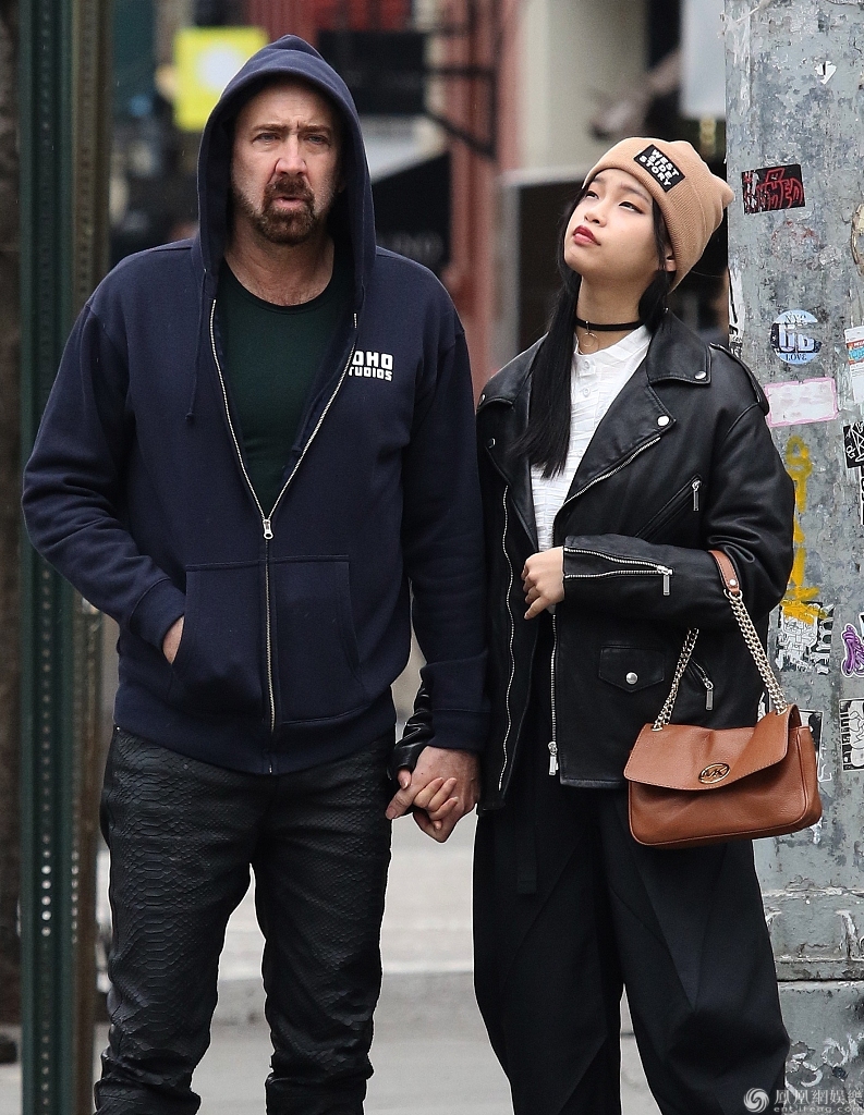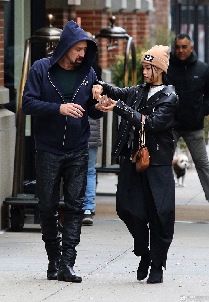 当地时间2020年3月3日,美国纽约,尼古拉斯·凯奇(Nicolas Cage)与女友Riko Shibata现身街