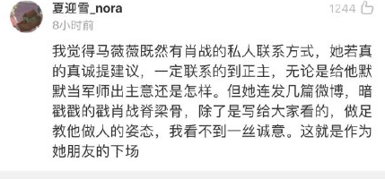 同样是合作过的关系,马薇薇建议肖战发声,粉丝认错▼▼▼