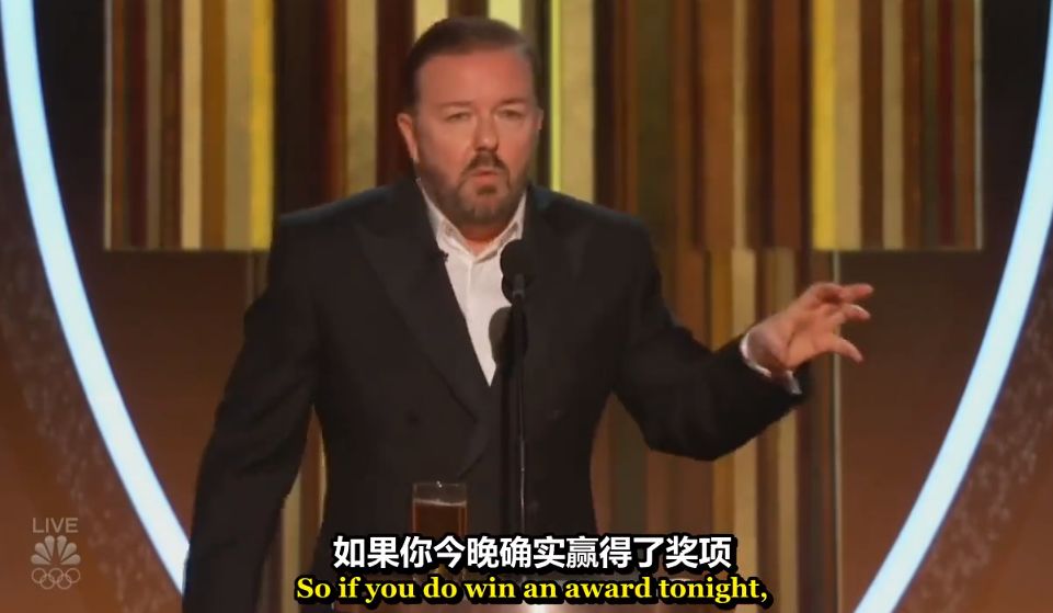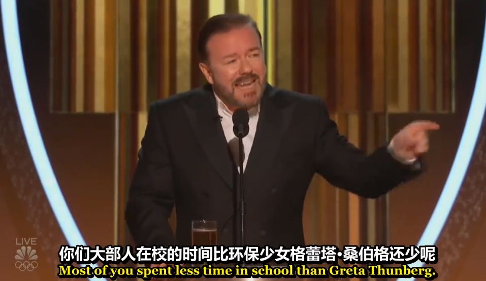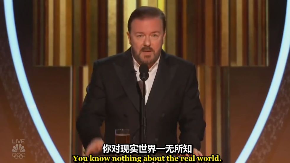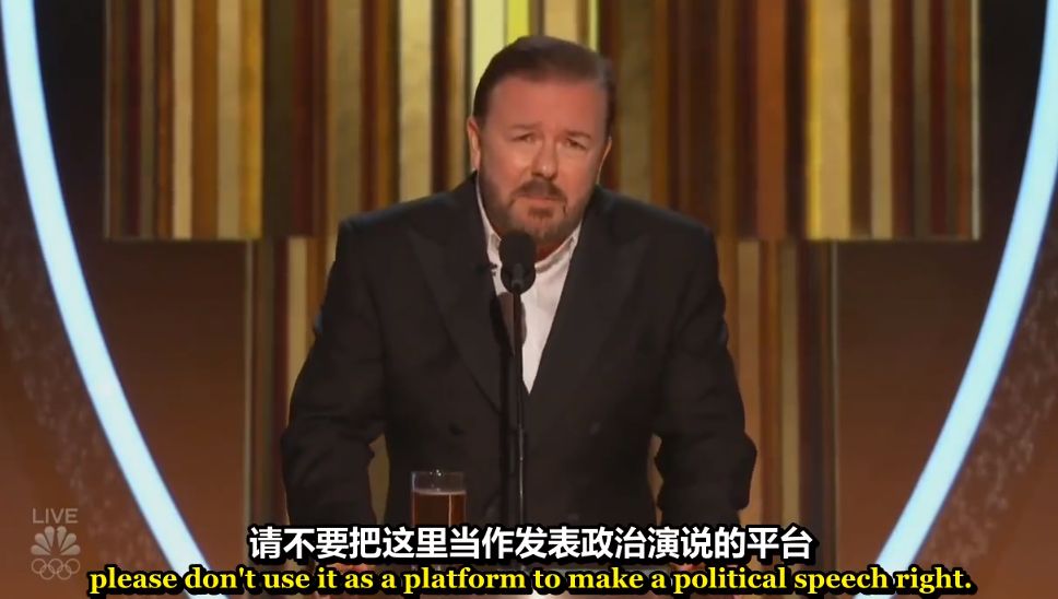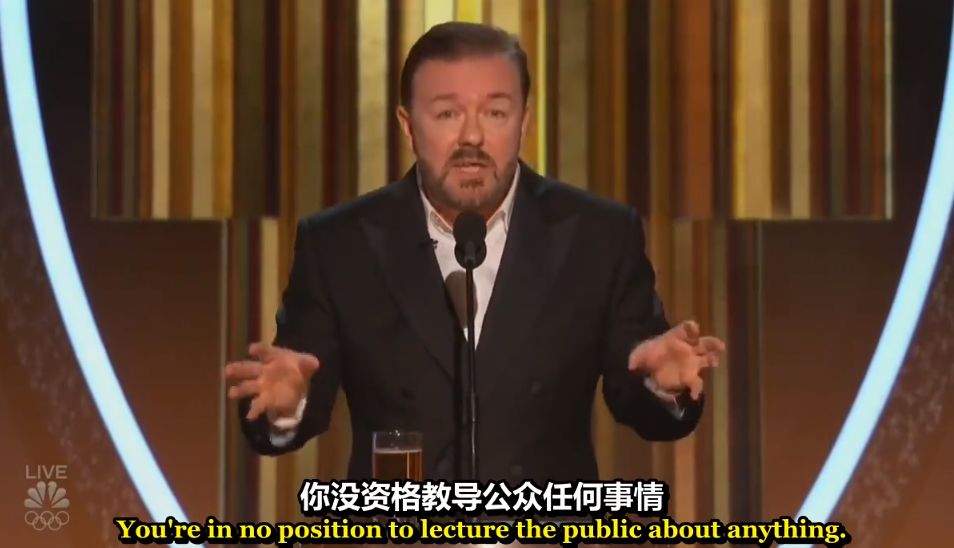 而如果他们谈论政治议题,社会新闻,2020年的金球奖颁奖礼上,主持人Ricky Gervais一把毒舌机关枪扫射好莱坞,特别收尾这段在微博万转▼▼▼