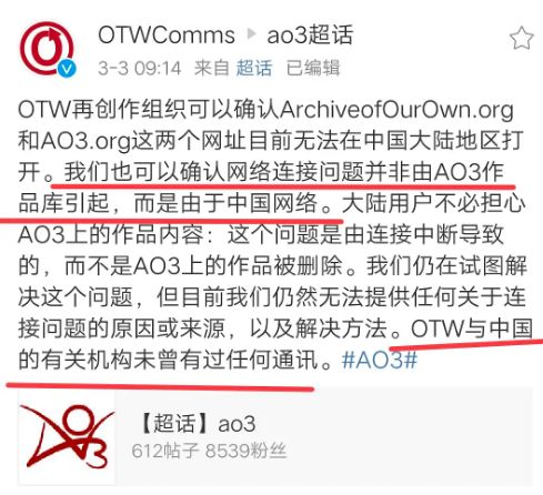 3月3日的最新情况是,AO3再次确认被墙▼▼▼