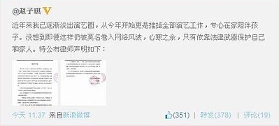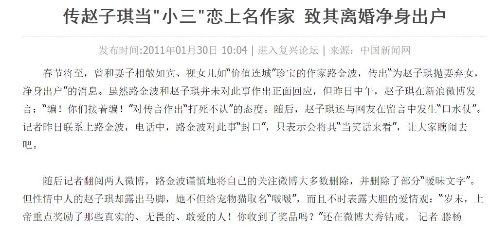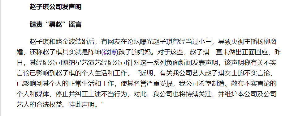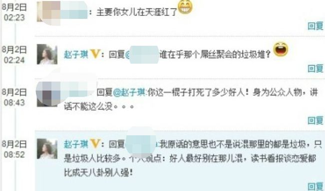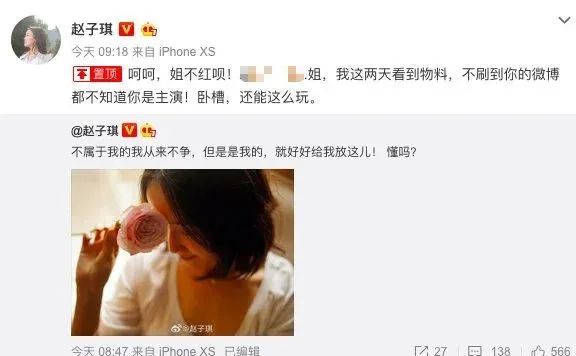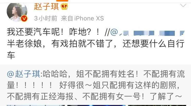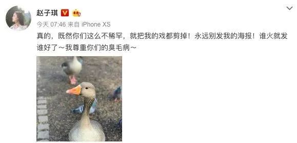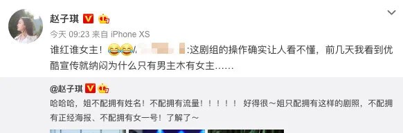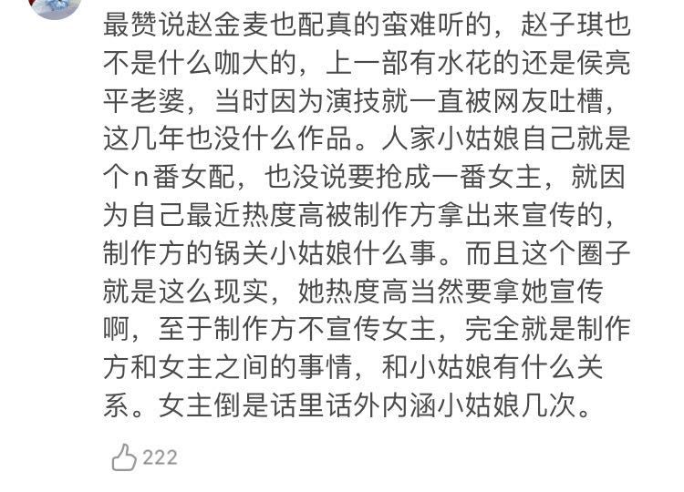手撕剧方,她作对了吗? 3月3日,赵子琪连发多条微博怼她主演的一部电视剧剧组,直指其在官宣时放了另一位女演员赵今麦的单人海报,而自己作为女主角只有剧照。 感受到她很愤怒:“不属于我的我从来不争,但是是我的,就好好给我放这儿!”、“既然你们这么不稀罕,就把我的戏都剪掉,永远别发我的海报!谁火就发谁好了。” 剧方不给她面子,赵子琪也完全不顾情面,反讽自己不够红,所以物料都看不出是她演的,还直接说“谁红谁女主”。 有网友说她半老徐娘,有戏拍就不错了,她直接转发回怼。 针对女主没单人海报的做法,许多网友支持赵子琪手撕剧方,感叹过气女演员真惨。 也有人一些为赵今麦说话,这是制作方的锅,不是赵今麦要抢一番女主。 曾经在网上战斗力十级的赵子琪又重出江湖 被网友说是“过气女演员”,证明她至少红过。赵子琪演了不少女主,有一定知名度。近年来沉寂了一段时间,关注度也下降了些。 她原名赵琳,1976年6月17日出生于北京市西城区,毕业于中国传媒大学。赵子琪就读大二时开始主持央视《生活》栏目,24岁时曾登上央视春晚舞台。2002年,她离开央视,投身影视圈。 第二年,赵子琪和陈坤出演电视剧《别了,温哥华》男女主,这部剧里还有李小冉,之后的赵子琪的演艺道路一路风雨无阻。 2009年一部赵宝刚执导的《我的青春谁做主》集齐了陆毅、王珞丹、朱雨辰、白百何等明星,当时王珞丹因为《奋斗》米莱一角超级红,但赵子琪依然牢牢占据海报的C位。放在这个年代估计会有一场粉圈撕番位大戏。 这部剧当年相当火,也是从这部戏开始,赵子琪和陆毅开启了银幕CP之路。在《我的青春谁做主》里饰演男女主赵青楚和周晋。 2015年电视剧《成长》里,饰演陆毅的前妻。 《人民的名义》里两位又演了一次夫妻。 虽然总是演一对,但网友吐槽过两人一点CP感都没有。 婚后赵子琪生活一片岁月静好,但脾气出了名的大 2011年7月16日,赵子琪与出版人路金波完婚。2012年1月和2013年分别生下两个女儿。现在小日子过得很温馨,一片岁月静好。 路金波是知名出版人,第一代网络作家,靠写文章出名,从普通网友变成国内网络文学界鼻祖,当年以笔名“李寻欢”与宁财神、邢育森并称为“网络文学三驾马车”,是王朔、韩寒、安妮宝贝等国内知名作家的“大东家”。 2011年7月,路金波赵子琪婚礼现场,韩寒、王珞丹现身。2012年1月初,赵子琪在香港顺利产下女儿,取名为“小火星”。 据悉,路金波与前妻育有一女,曾经写过很多与妻女有关的文章,感动了无数网友。网传2010年12月路金波已经离婚净身出户,恋上了赵子琪。 那会《蜗居》、《心术》等作品的知名编剧六六也跑出来吃瓜。 面对小三传闻,赵子琪也不是吃素的,出来爆粗怒怼网友。 2011年7月22日,婚后路金波在微博上承认,没有经营好上一段婚姻,对宝贝女儿或有影响。他表示给赵子琪招来外界骂声的小三传闻是假新闻,替赵子琪求情:“她跟我已经够不幸了。大侠们差不多得了。” 按现在的话来说,赵子琪属于腥风血雨体质,关于她的传闻不断,传她曾插足央视主播杨柳的婚姻,甚至还传过她是陈坤孩子的妈。赵子琪的经纪公司博纳星艺针对一系列负面新闻发声明否认过。 赵子琪本人也接受采访回应,没生过孩子,和杨柳没关系。和路金波认识时,路正在和前妻分居,分居与她无关,她和路金波属于闪婚。 赵子琪和路金波的婚姻还有另一段插曲,网络作家木子美曾爆料自己和路金波非同寻常的关系。赵子琪勇敢护夫,发博讽刺其丑人多作怪。 曾经有网友拿王诗龄和赵子琪女儿的照片比谁更可爱,闹出过另一个风波。赵子琪毕于北京广播学院94级,李湘和胡可都是她的同学。 2013年《爸爸去哪儿》爆红,天涯一位ID为“拯救银河系”的网友发布了一个比美帖《李湘的女儿和赵子琪的女儿,两个胖嘟嘟的小娃你觉得谁更漂亮?》,从而引起了其他网友的注意。 大部分网友觉得Angela更可爱,于是这位发帖比美的楼主突然与其他网友开始互呛。并且有网友发现该楼主所发的“小火星”照片中,甚至有些是高清没有水印的原始图片,有网友质疑她是否就是赵子琪本人。 消息蔓延到微博,赵子琪大战网友,骂天涯网友“屌丝聚会”、“垃圾人比较多”。 而且她发了一条微博表示根本不看节目。 之后,把搬运此事的营销号给告了。 赵子琪在网上的所作所为一直有争议。2018年世界杯,阿根廷队出局,作为梅西球迷的赵子琪老公哭成泪人,赵子琪把视频聊天截图发博,被网友吐槽戏精。 她还曾经为了厨艺这事和网友杠了起来,有人说她做饭不如黄磊,她回复“关你屁事,嘴那么贱”。有网友说老给孩子吃炒饭不好,她也挑出来专门回怼过去。 网上“战绩”累累,赵子琪属于有仇必报的类型,和网友对骂也不输的彪悍性格。这次作为女主,居然连个人海报都没有,以她的性格不开撕才奇怪。 影视剧宣传“谁当下更红就主推谁”的作法,并不少见。为了作品的热度,主打某位明星吸引眼球,可以理解。但直接忽视主演,让其在物料和海报中毫无存在感,甚至把主角改成配角,这就有点不尊重原创团队了。