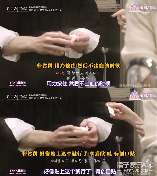 那边男一却不小心被刀刮伤了,不断渗出血的手指引起了女三的注意;