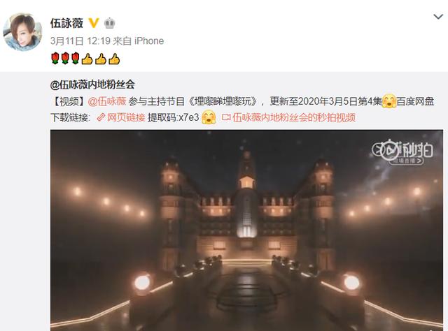 受到疫情影响,很多艺人都待在家中进行隔离,伍咏薇也经常上线更新动态,与粉丝们分享自己的生活。