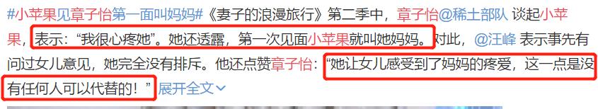 其实章子怡和汪峰此前在综艺《妻子的浪漫旅行》中表示过,小苹果和后妈章子怡的关系非常亲,她头一次见章子怡就叫“妈妈”,也是对这位继母的认可。