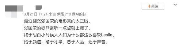 也有人说,“张国荣的歌只需听一点点就上瘾了”。