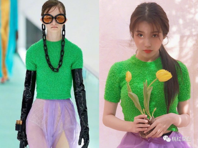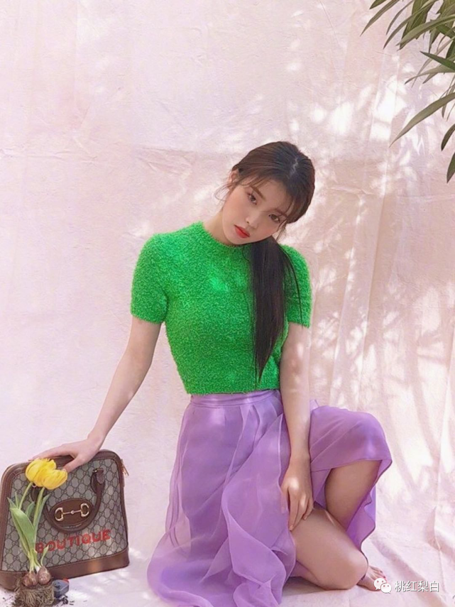 之前就有说过,iu的个人气质真的不太能hold住Gucci的花花绿绿风,尤其是这种饱和度很高很亮的款式,到了她身上真的分分钟变乡土气息。