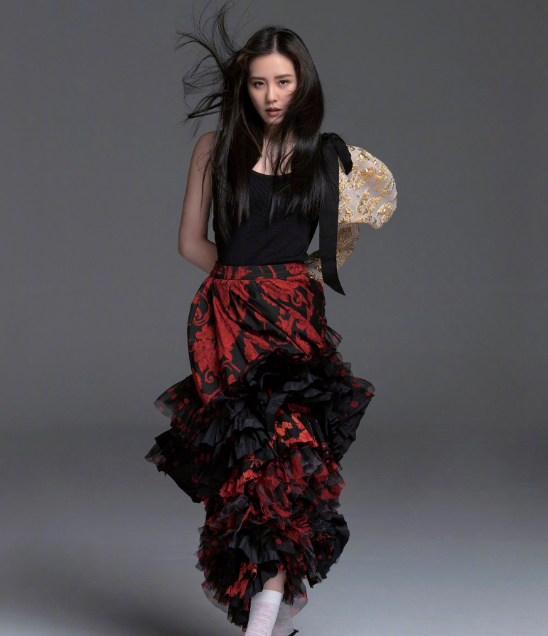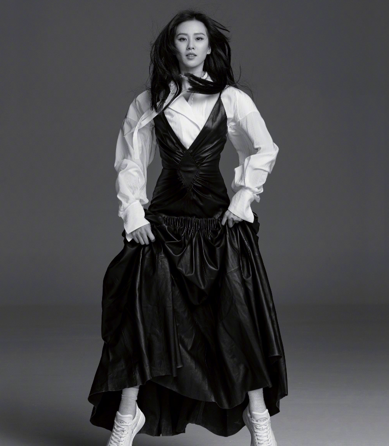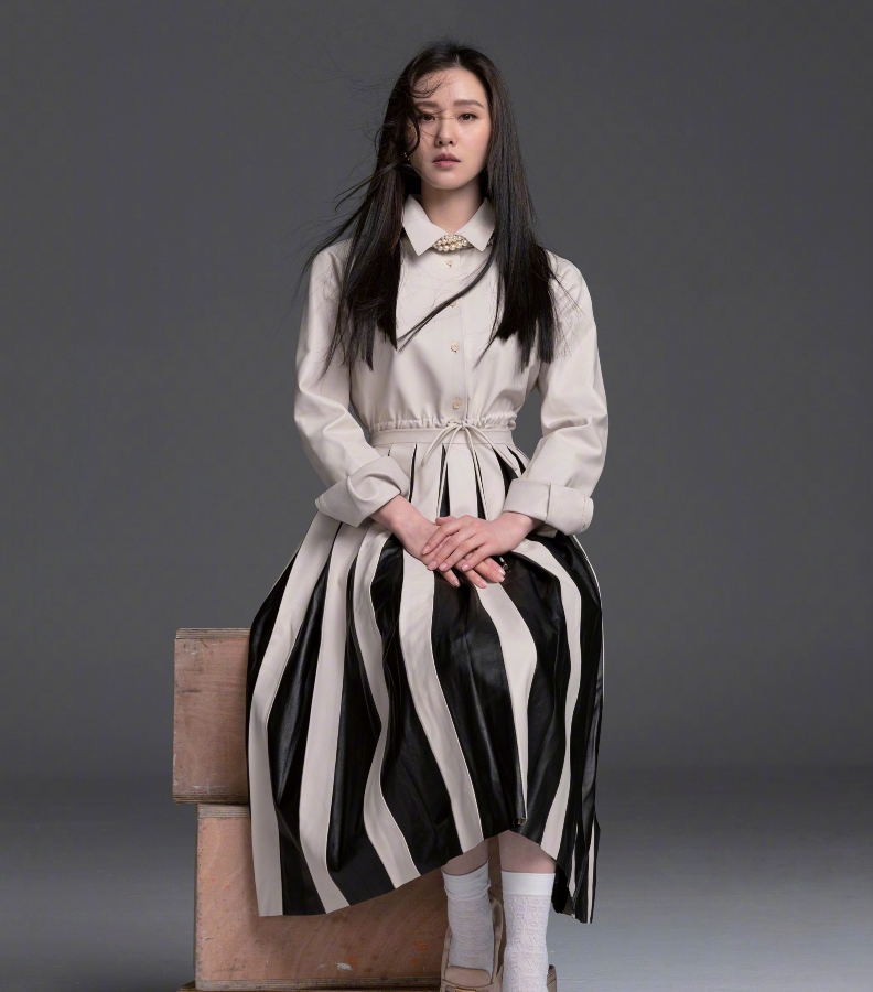 照片中她罕见以黑长直发型出镜,化着淡妆的她轻松驾驭各种风格的服饰,随性美丽。