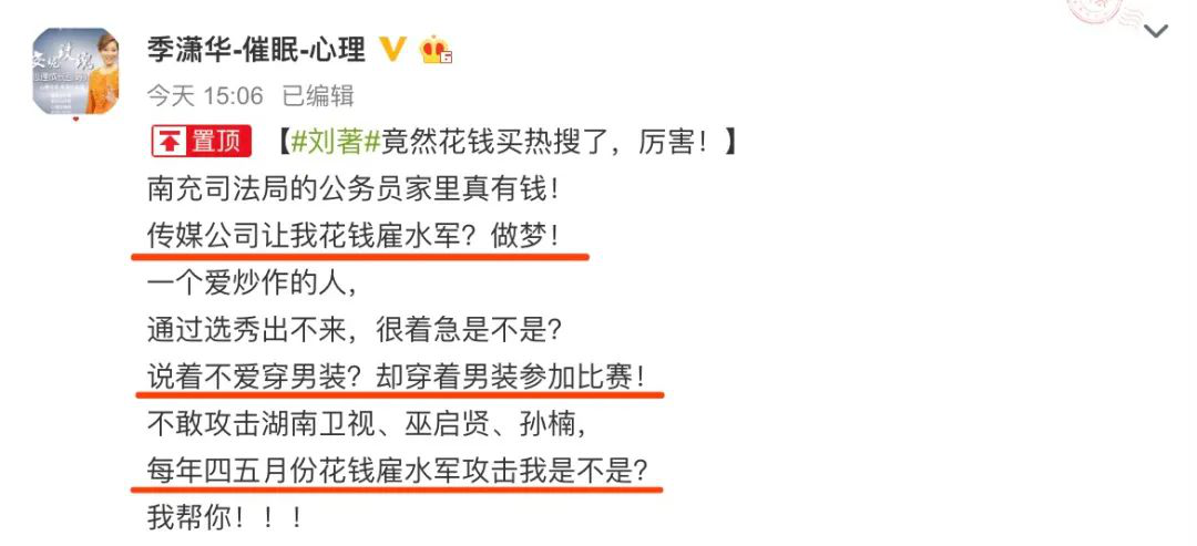 怎么讲,人肉这出戏一演就是十年。安妮老师倒也算持之以恒了。最好笑的是,直到"刘著"的名字快要下热搜,安妮老师都在疯言疯语。还表示刘著简直是个炒作精,一炒就是将近十年。