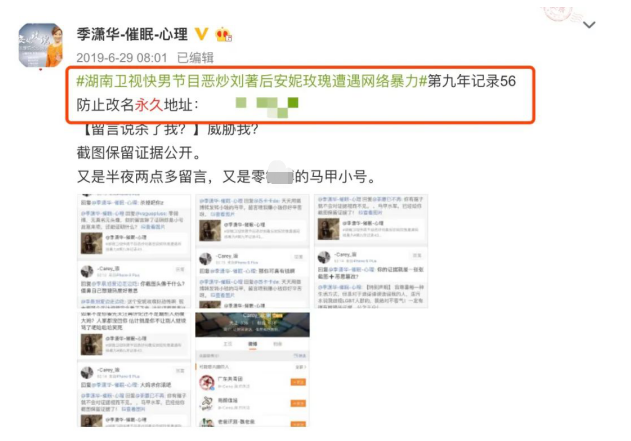 随手一搜,从2010年不打不相识,到2020年和刘著双双喜提热门。安妮老师大概发了上百条类似的动态。主角除了倒霉催的刘著,还有帮他说话的路人。有时候安妮老师甚至会一一记下路人们的网络ID,为的就是存档+人肉。
