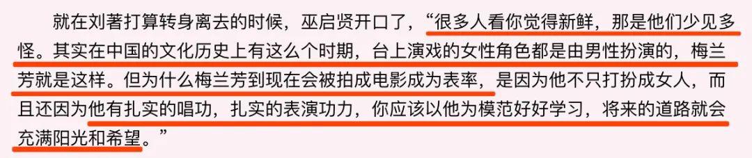 巫启贤甚至还提到了梅兰芳,以此鼓励刘著练好唱功,靠实力来服众。事情发展到这里,十年前的快男刘著眼看着拿到了大女主剧本"美,强,惨"。日后走个KOL的路子、混个网红圈也不是不行。