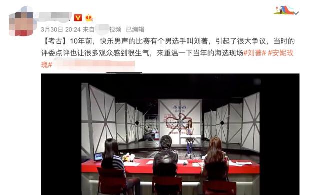 别急,咱们下面挨个解答。3月30日晚,有娱乐大V突然考古,翻出了2010年快男海选的视频。表示节目中"话题人物"这回事早已有之,就像10年前快男选手刘著。