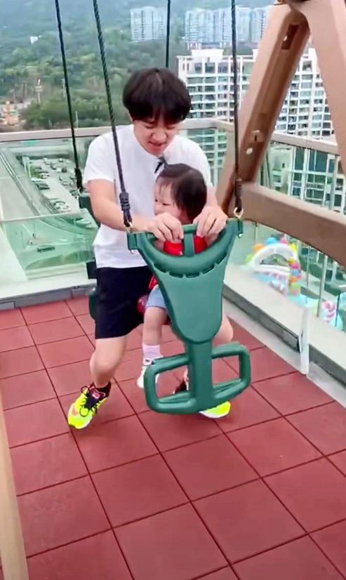 画面一转,王祖蓝正陪着女儿在豪宅顶楼荡秋千,从照片看王祖蓝穿得十分居家,天韵扎着萌萌哒的小啾啾也是可爱十足,小长腿十分抢眼哦。父女俩坐在秋千上兴致都非常高,王祖蓝更是全程笑开花儿,可见陪女儿玩耍,他真是打心底开心呀。
