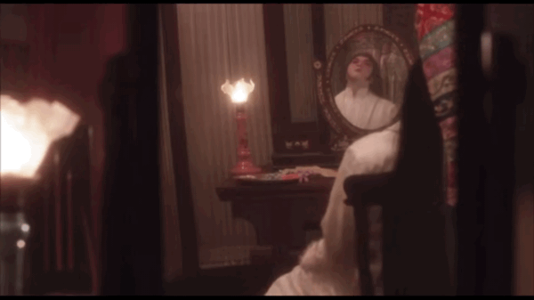 一个停步、转身、回眸,从想要师哥回心转意而苦苦哀求,到背对段小楼和菊仙的背影,烛光台前面对铜镜瘫倒绝望。