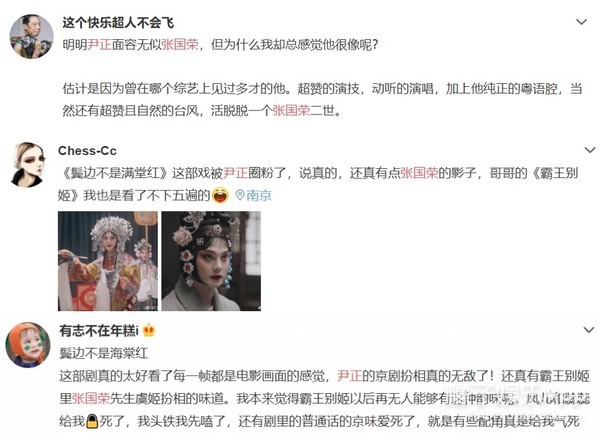 尹正对偶像张国荣的爱真的太深刻了。摇曳的姿态,扶手走路的样子,一颦一笑的神情都在尽力的像程蝶衣靠近。