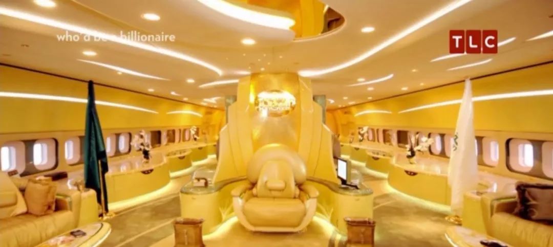 而私人飞机的奢侈程度也无非是尺寸及豪华装修,我们可以看看阿联酋某位富豪的样本和品味,一眼望去金光灿灿,就恨不得整个飞机都是黄金做的了: