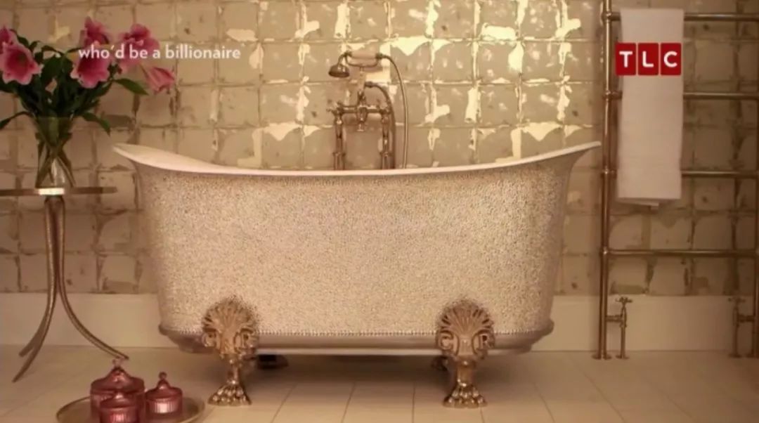最初它在迪拜,位于朱美拉棕榈岛的第二十二世克拉别墅内。现在它属于美国明星塔玛拉·埃克莱斯顿,她爸爸是F1赛车总裁伯尼·埃克尔斯通,拥有身家36亿美元。这个浴缸花了爸爸三千万,是送给女儿的生日礼物。