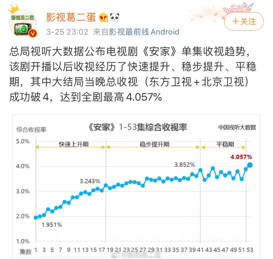 ▲ 大结局当晚的总收视(东方卫视+北京卫视)更是成功破4,这种收视率在近年是奇迹了。