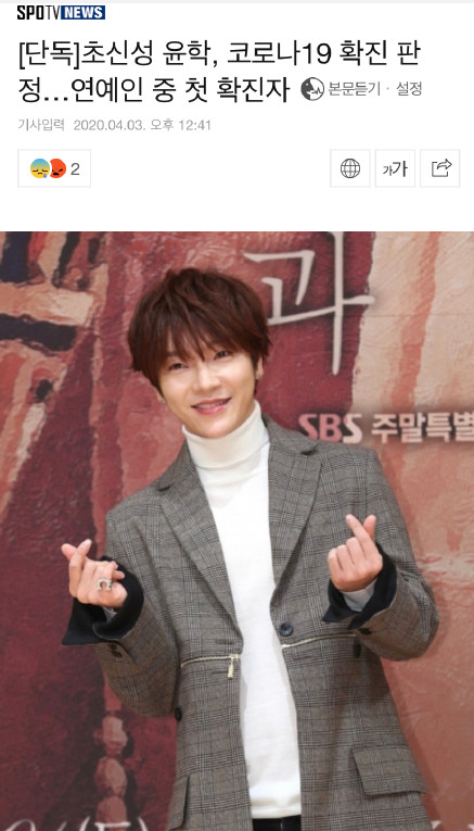 4月3日消息,据韩媒,韩国SUPERNOVA组合成员允鹤于1日被确诊为“新冠肺炎”患者。他是首位被确诊的韩国艺人。