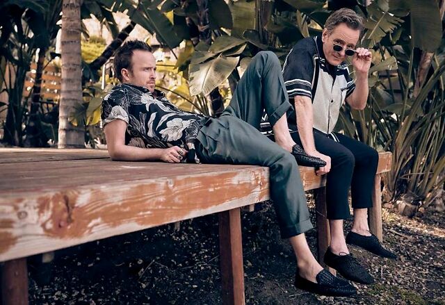 “老白”布莱恩·科兰斯顿和“小粉”亚伦·保尔这对绝命师徒最近一起登上了墨西哥版Esquire杂志四月刊的封