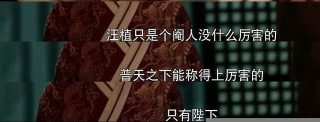这个角色一开始并不讨喜,甚至有些像大反派,路人甲台词里的汪植是个心狠手辣的阉人,靠巴结万贵妃才爬上了高位。