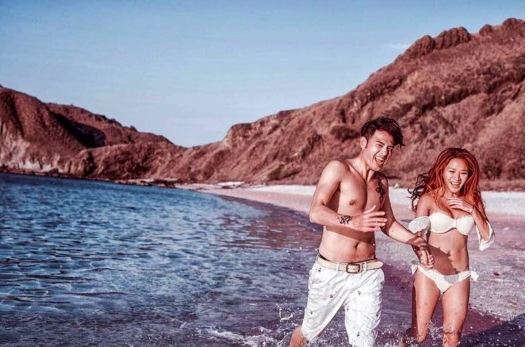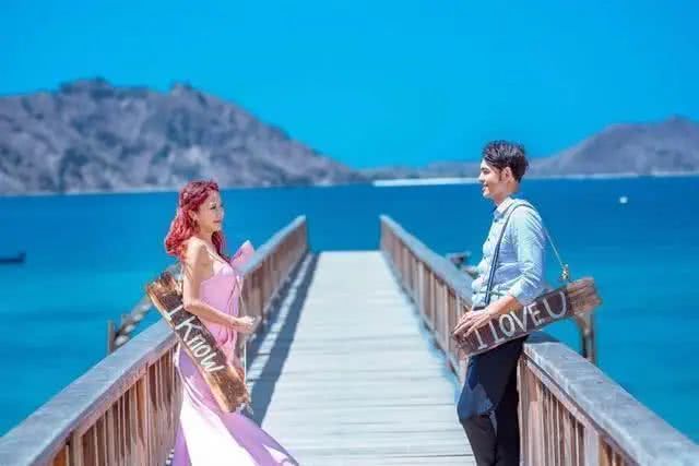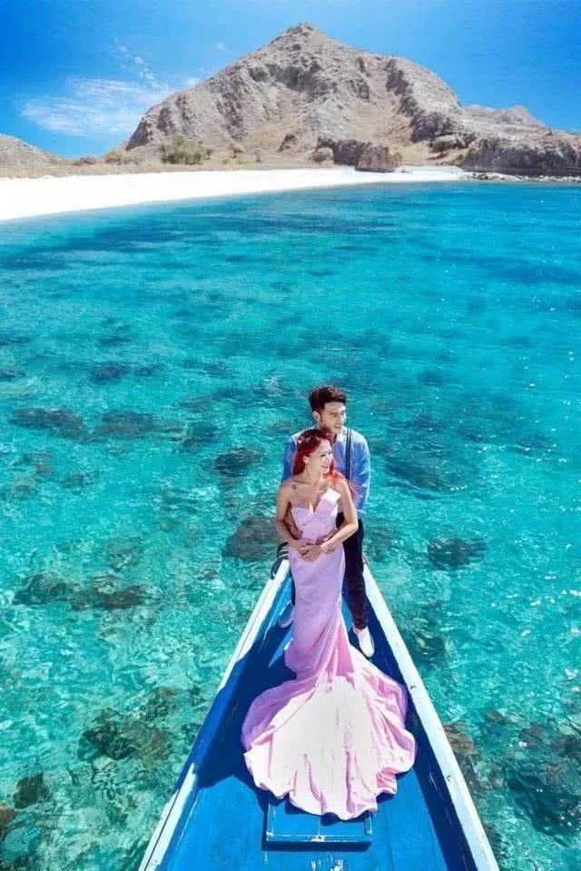 两人的婚纱照确实美美的!据说两人特地赴印尼科摩多群岛粉红沙滩拍的婚纱照,而且这个婚纱照背后还充满了诚意和心思的含义。