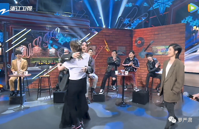 肢体动作已经预示着后来的一切,厉娜是第一个冲上去拥抱尚雯婕的,此时许飞插兜观看。