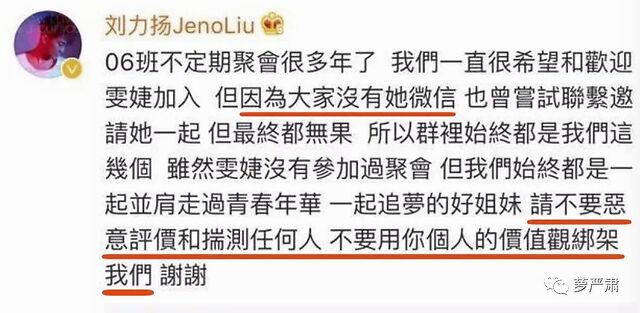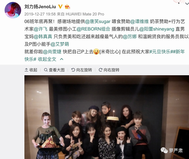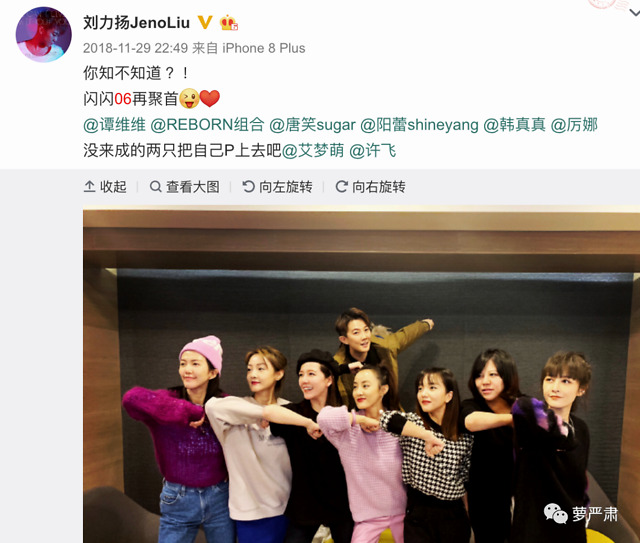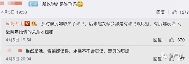 直到2019年12月许飞和厉娜才一起出现,人员也相对较齐,只差尚雯婕一个。当时在评论底下就有说尚雯婕不合群 刘力扬说没有尚雯婕微信,尝试邀请无果;另一方面又说,不要恶意揣测任何人。