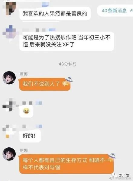 厉娜在粉丝群里让粉丝们不要说许飞的是非,称:“每个人都有自己的生存方式,和咱不一样不代表对与错。”
