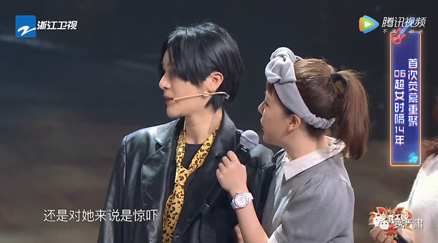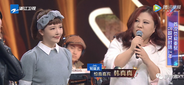 4月3号播出的新一期节目里,尚雯婕是嘉宾,节目组声称安排了惊喜礼物给她:叫来了06年超女选手许飞、厉娜、唐笑、韩真真,唱着当时的主题曲《唱得响亮》登场。(冷知识:05超女主题曲《想唱就唱》,06超女主题曲《唱得响亮》,这是两首歌。)