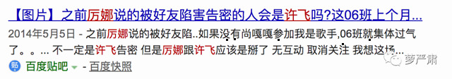 人缘很好、关注了很多同期选手的厉娜并没有和许飞相互关注。还有一个细节是,早期06超女聚会都是有许飞没厉娜,有厉娜没许飞,直到近两年两人关系才缓和。