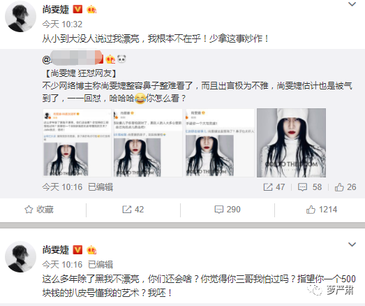 此外尚雯婕微博上比较放飞,会直接骂歧视同性恋的人,但也最讨厌别人说她整容。