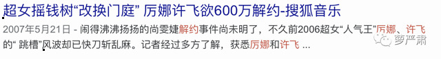 尚雯婕是06年超女里面较早和天娱解约的,比赛结束第二年就打解约官司了。而在尚雯婕忙着解约的时候,坊间传出许飞和厉娜解约的消息。