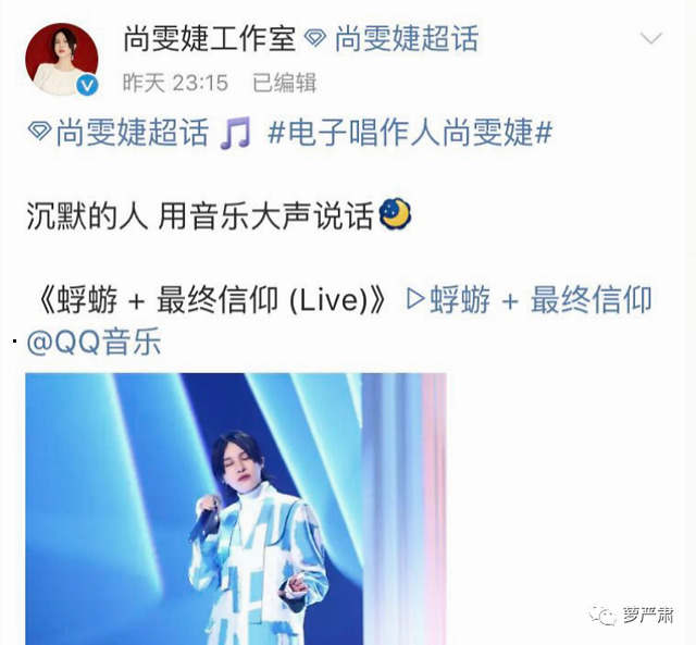 许飞点名反击之后,尚雯婕那边在工作室官博隔空回应:“沉默的人,用音乐大声说话”。