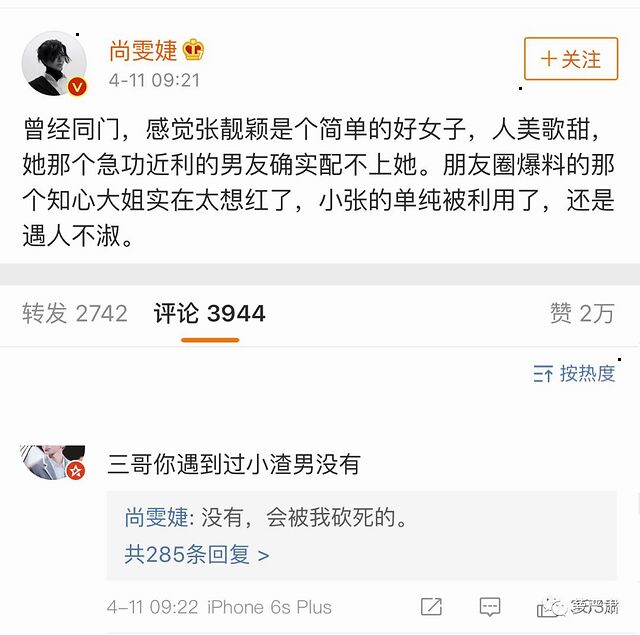 从“雷人打扮”开始,尚雯婕身上的“炒作”争议就一直都有,2018年张靓颖被传离婚时她第一时间发博说冯轲配不上她,又说朋友圈爆料的词作者文雅是太像红了,利用了张靓颖。