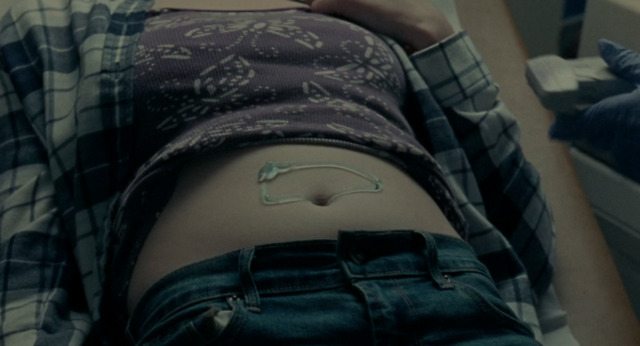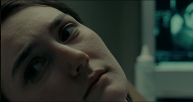 她在得知自己怀孕后生硬地为自己打了鼻钉,捶打自己的腹部,脱下内衣后摸索自己的背部,这一切似乎都在证明着她努力尝试对自己身体的拥有,然而这一切却,似乎,怎么也比不上一次“从不,很少,有时,总是”对她身体和生命造成的波澜与撼动。