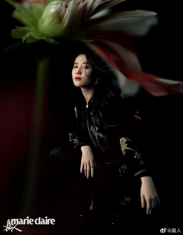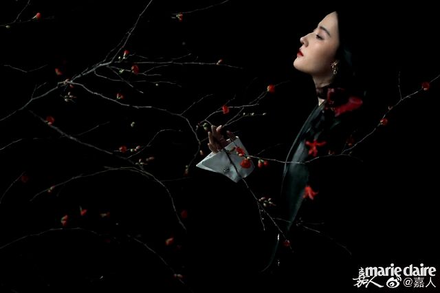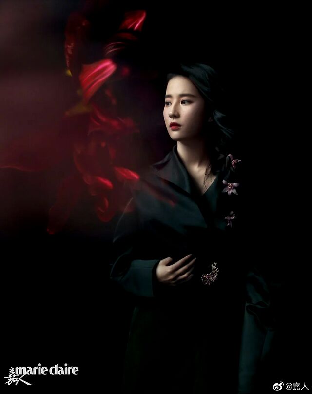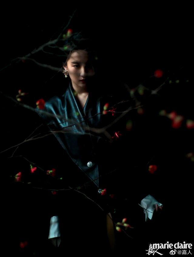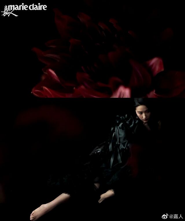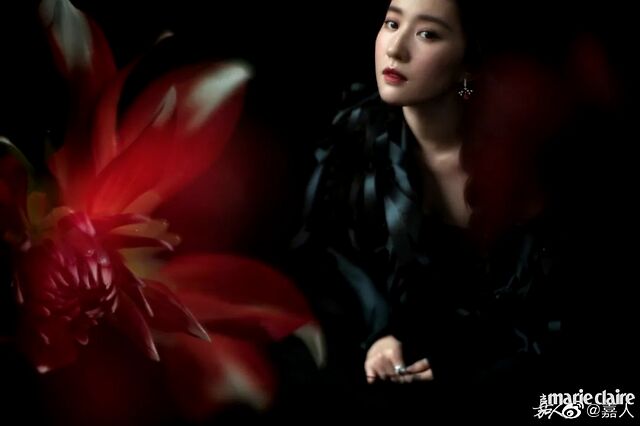 摄影师陈漫上次拍倪妮的时候,也用了美人与花交相辉映的意象。不同的是,这次的暗色写真系放大了刘亦菲身上的神秘感与不确定性。