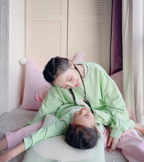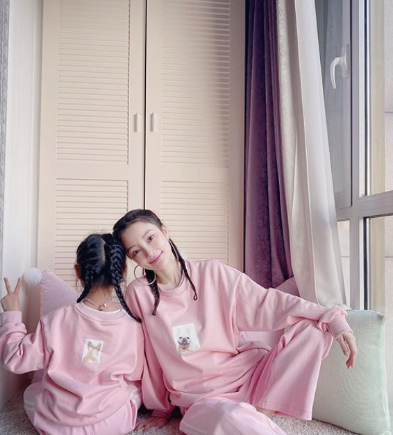 照片中,甜馨和李小璐穿着亲子装,梳着同样的发型,看起来就像是姐妹俩,十分有爱。