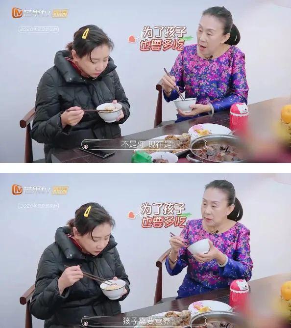 何雯娜已经非常难受了,在饭桌上仰头喊了好几次“我真的吃不下去了”,但是何雯娜婆婆还是在旁边像监工一样逼着何雯娜吃肉,婆婆一口一句“我看着你吃”、“没有商量”、“不爱吃也得吃”,你们品,你们细品。