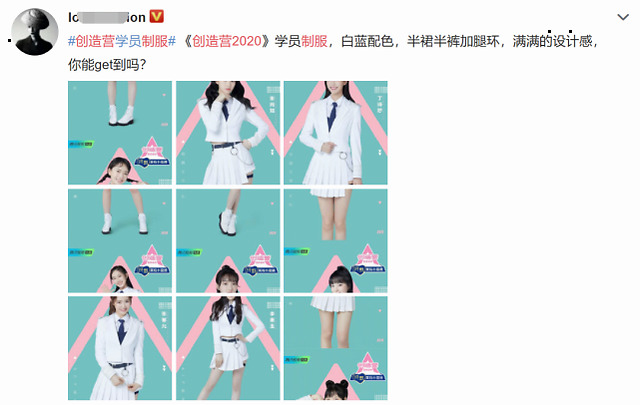 4月8日,《创造营2020》官宣学员制服照,小西装搭配设计感十足的下装,洋溢满满的青春气