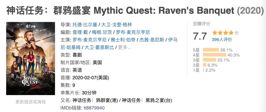 这部剧新近于2月7日在Apple TV上线,一次性放出第一季全部9集,每集30分钟,自带官方中文字幕。虽然至今在豆瓣上仅有三百多人评分,但其实这部剧在海外有着不错的口碑,已经早早地续订第二季。