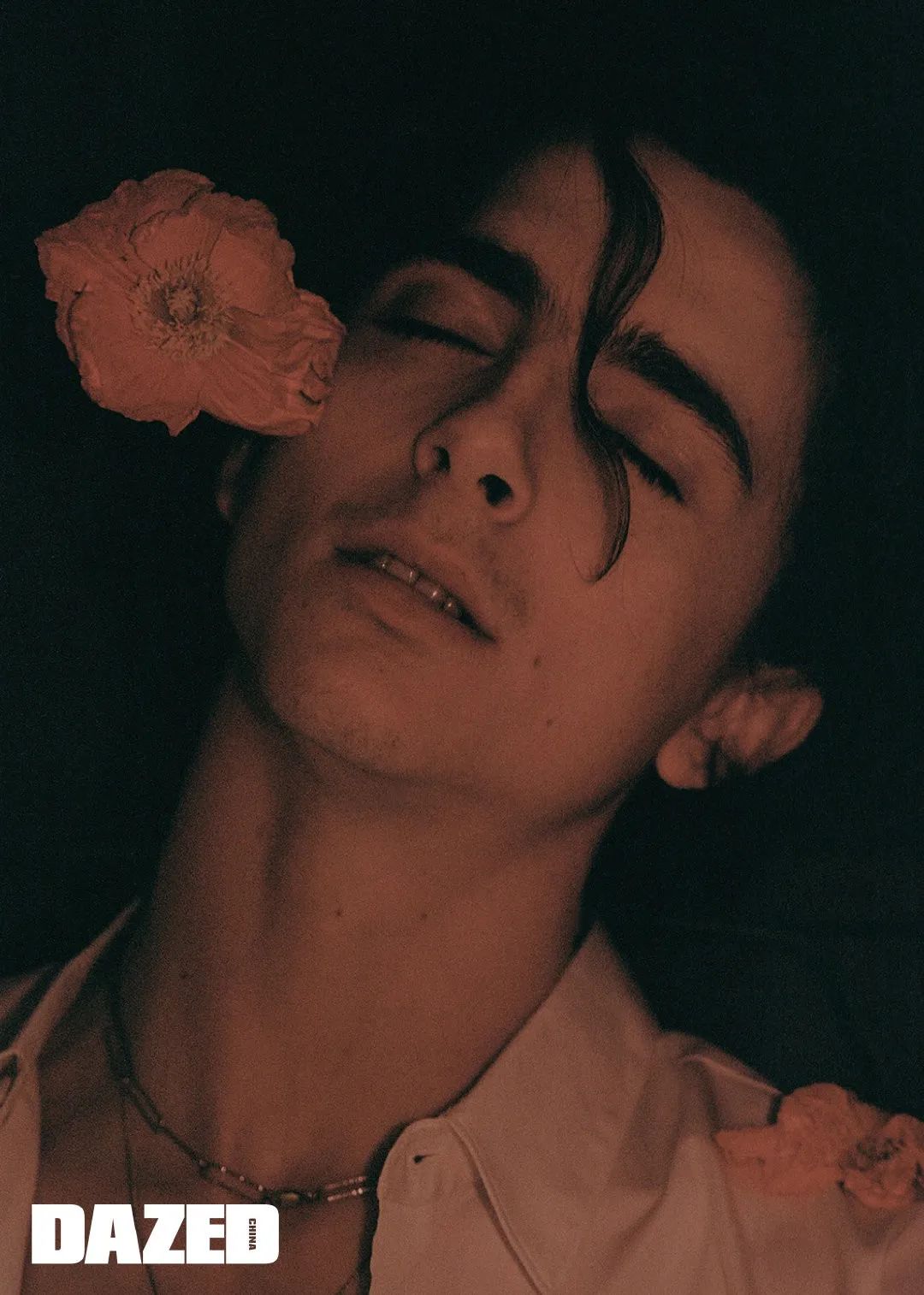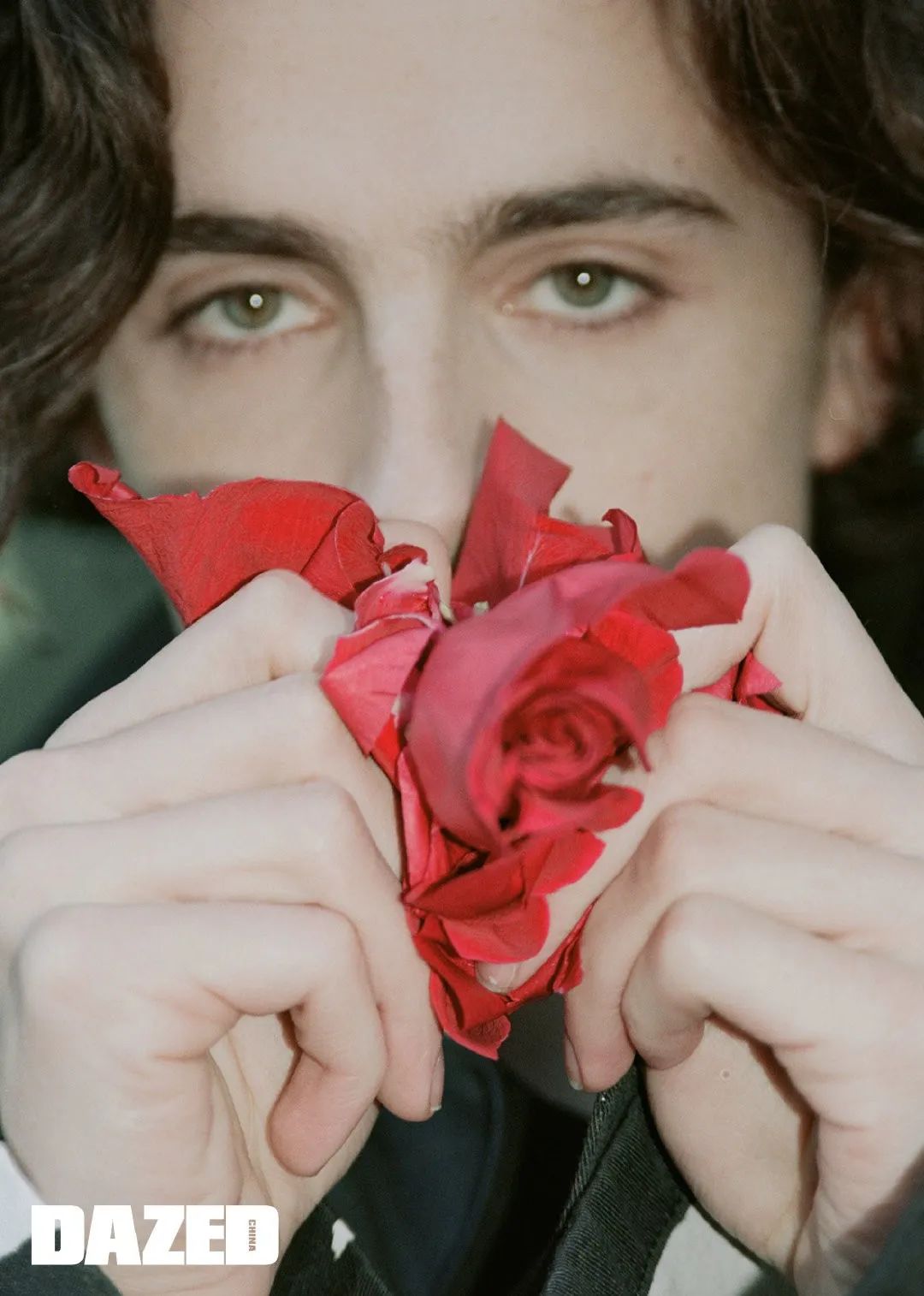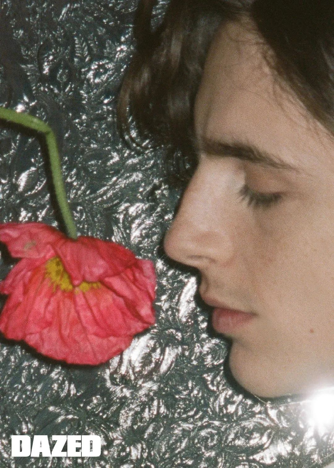 今天的赏色分享一组“甜茶”蒂莫西·柴勒梅德为中国版DAZED杂志拍摄的封面写真。有“甜茶”,有花,春天应该不远了。