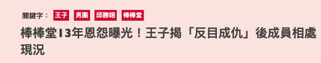 据台媒4月11日报道,棒棒堂组合成员王子接受媒体采访透露了当年组合分开原因,回忆当年,感慨颇多。王子表示:“其实也没有真的有什么事情反目成仇,硬要说,可能就是曾经一起打拼奋斗的兄弟,因为合约问题分开,彼此变成对立、互相比较的状态。”
