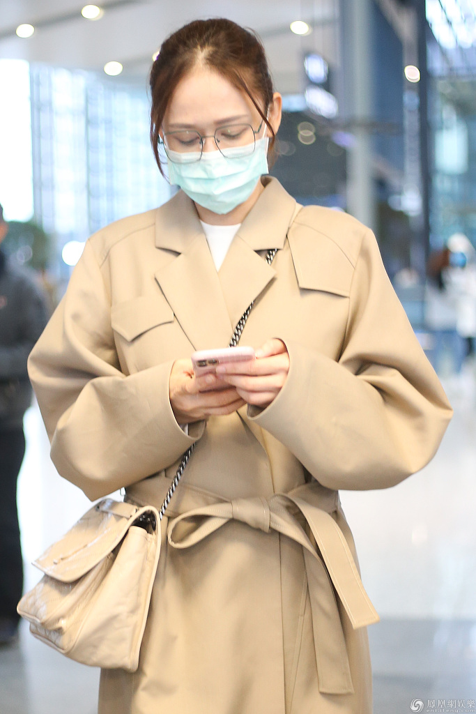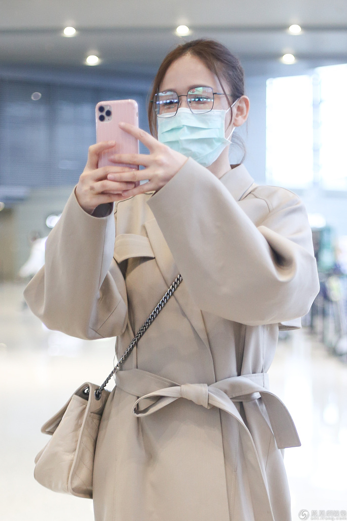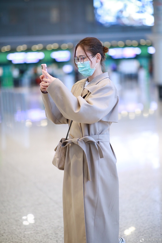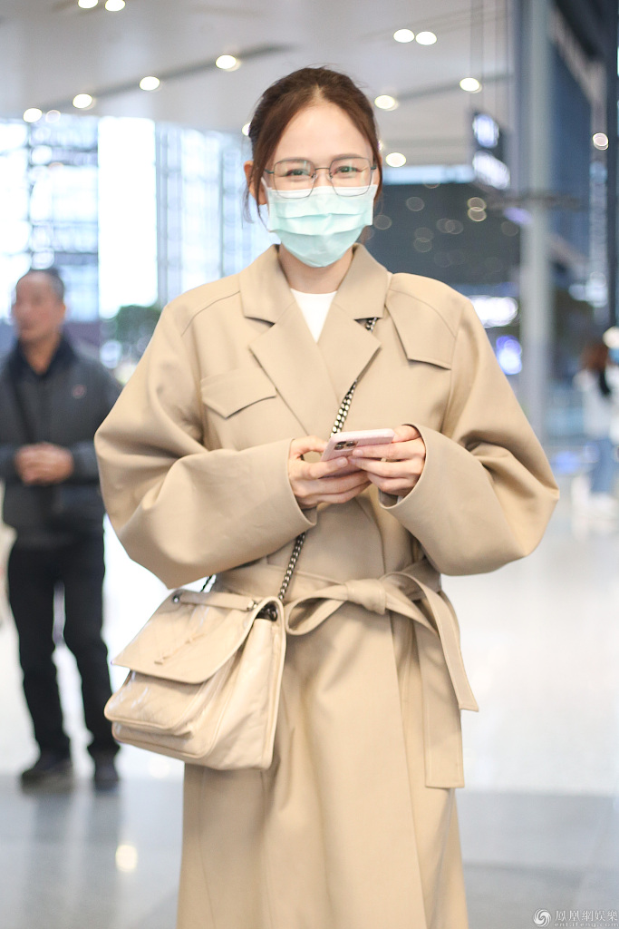 2020年4月11日,北京,陈乔恩现身机场。她戴金边眼镜眉眼弯弯,穿卡其色大衣温柔知性,调皮和粉丝对拍鬼马可