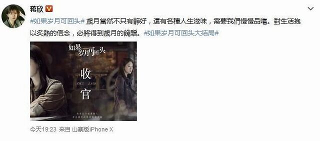 13日晚蒋欣的新剧《如果岁月可回头》收官,蒋欣也在微博发表了自己对这部剧收官的感慨。虽然这部剧从开播到播完也没掀起太大水花,但不可否认这些年蒋欣塑造了不少经典的电视剧角