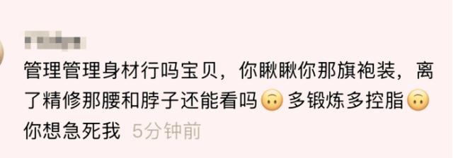 素菜上镜、脸也够小,但操碎了心的粉丝依然很“暴躁”,有人留言让她多锻炼、控制一下脂肪。