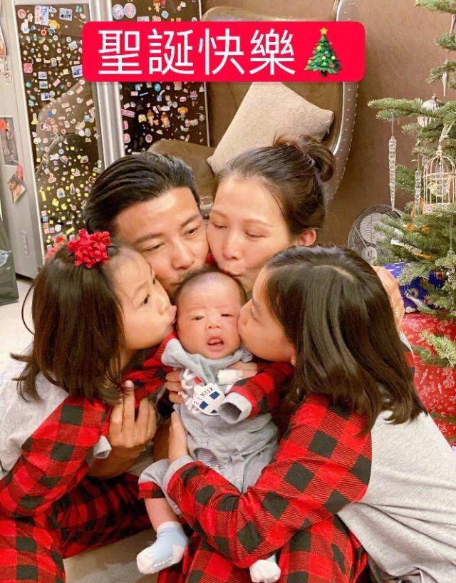 其中,蔡少芬双手举高快满5个月的小儿子乐儿,满脸宠溺看着儿子,脸上表情笑开了花。而张晋则抱着一个女儿,被老婆笑声感染的他也是不忘回头望向妻儿,其乐融融的画面简直不要太温馨!